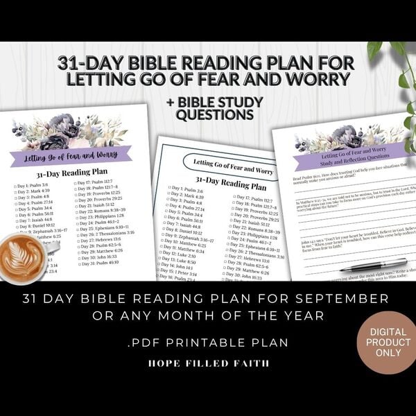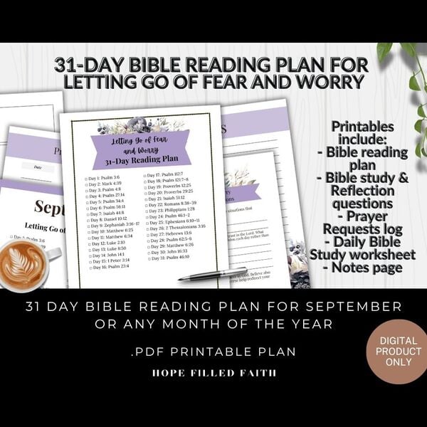 FREE Printable 31 Day Scripture Reading Plan .PDF - Letting Go of Fear and Worry - September