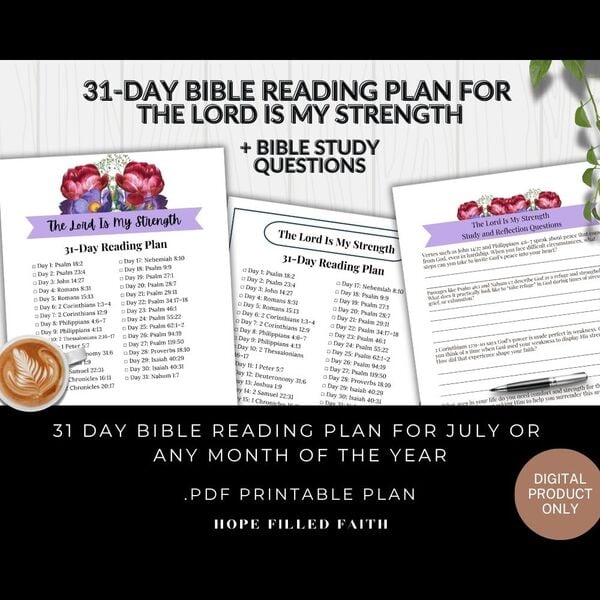 FREE Printable 31 Day Scripture Reading Plan .PDF - The Lord is My Strength- July