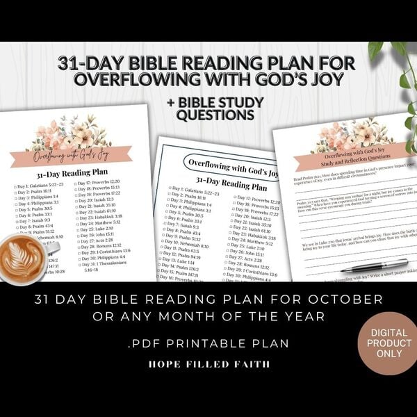 Overflowing with God's Joy - Printable Bible Study Guide with Bible Reading Plan, Bible Study & Reflection Questions, & Bible Journal Pages