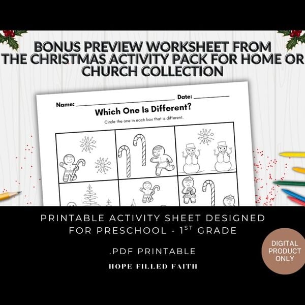 FREE Bible Printable Worksheet, Christmas theme: Which One is Different - Children's Church, Sunday School, Homeschool Worksheet