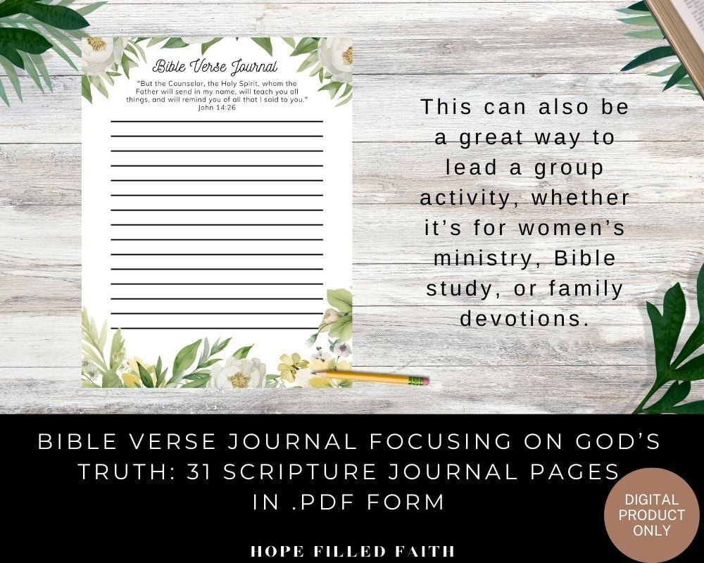 - A download of a printable 31-page journal .PDF with a Bible verse or verses for each day, with many lines to write down reflection or prayers. - No physical product will be shipped to you. This is a digital product only.