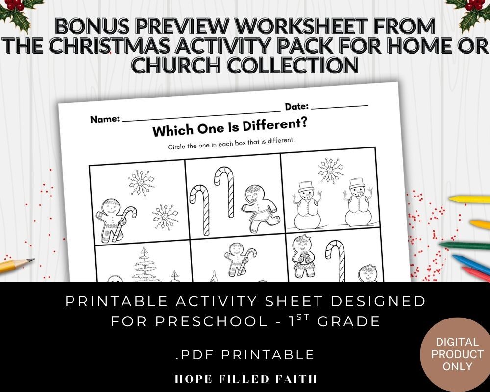 FREE Bible Printable Worksheet, Christmas theme: Which One is Different - Children's Church, Sunday School, Homeschool Worksheet