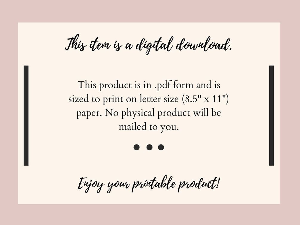 - No physical product will be shipped to you. This is a digital product only.