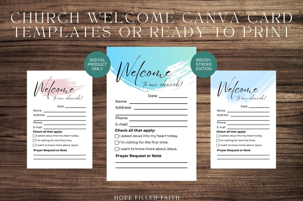 Church Welcome Card for Visitors, Members, Regular Attenders - Canva Template & Premade .JPG & .PDF - Brushstroke Design