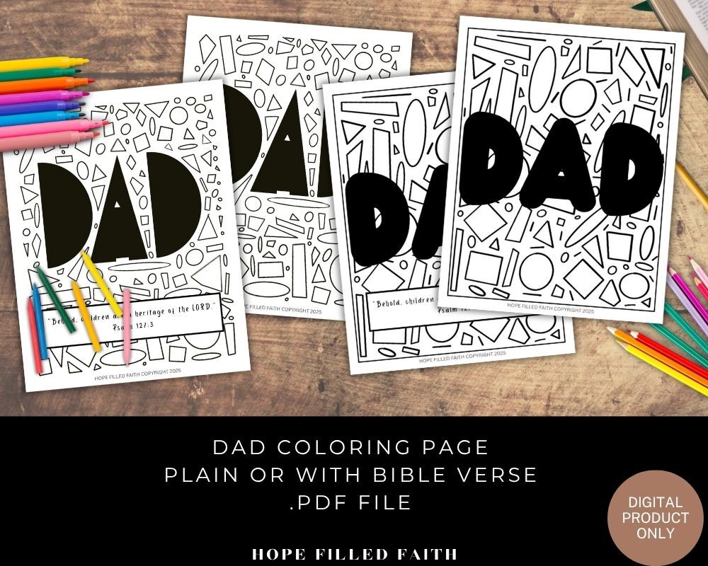 FREE Printable Dad Geometric Coloring Pages, with or without Scripture .PDF