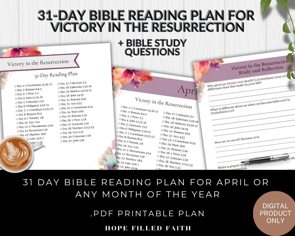 - Daily Scriptures: 31 Bible verses centered on experiencing the victory of Christ's resurrection, offering daily encouragement and reflection.