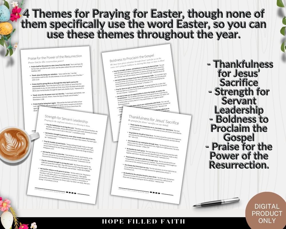 - A 4-page downloadable .PDF file with 4 Easter prayer themes - No physical product will be shipped to you. This is a digital product only.