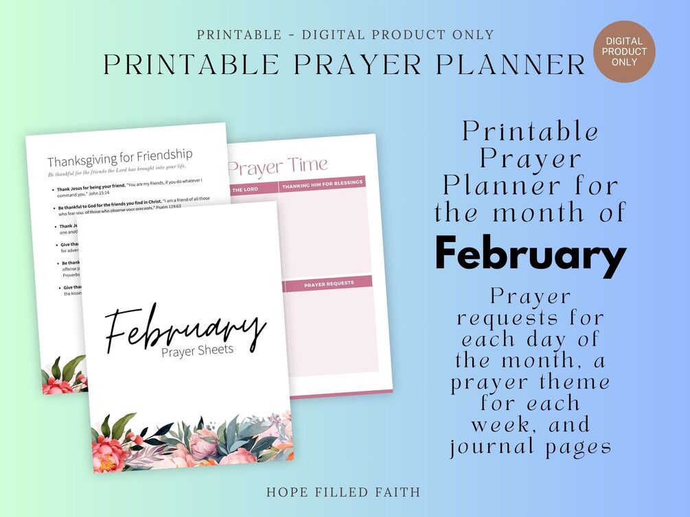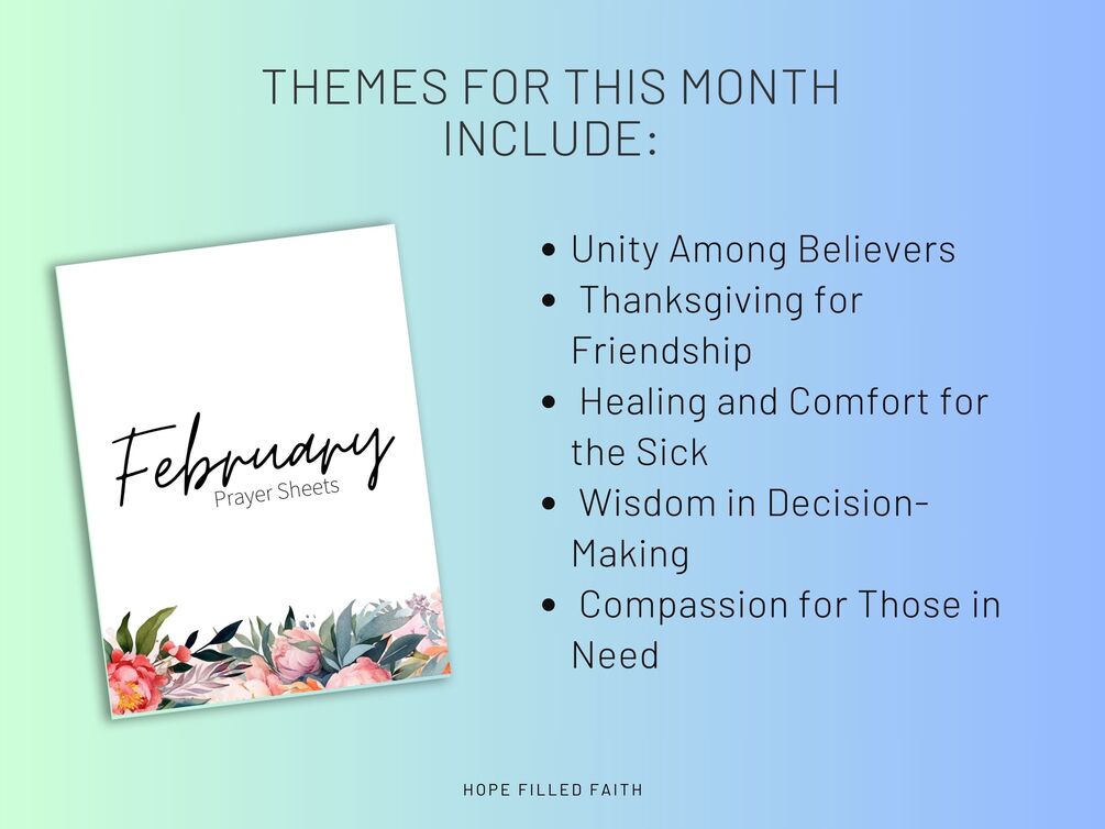 February - Free Printable Prayer Journal with Weekly Prayer Points, Christian Digital Prayer Planner PDF with 5 Prayer Themes