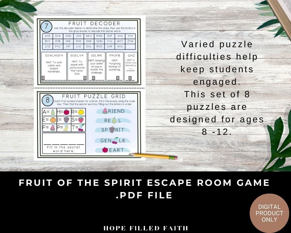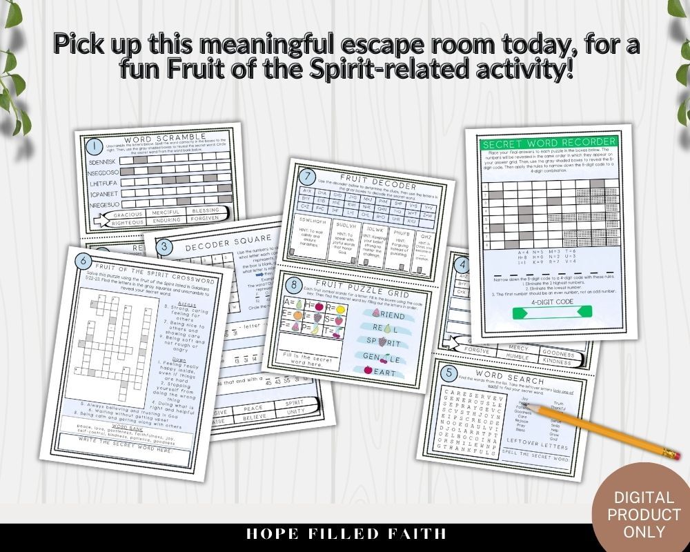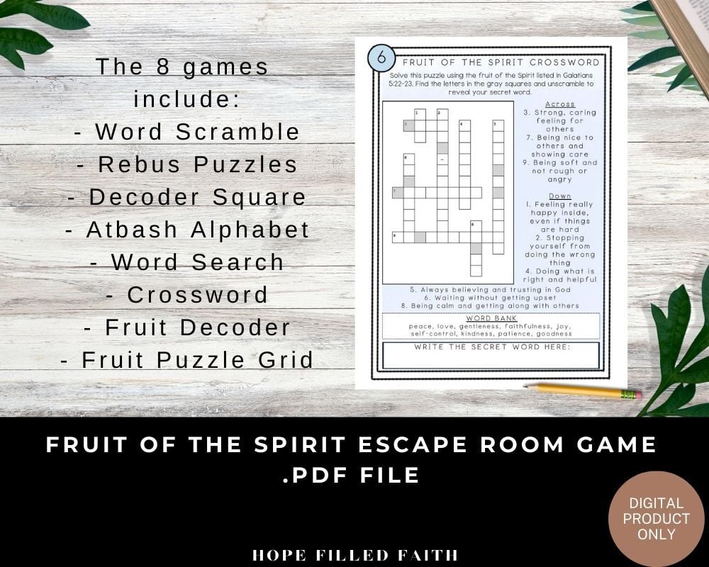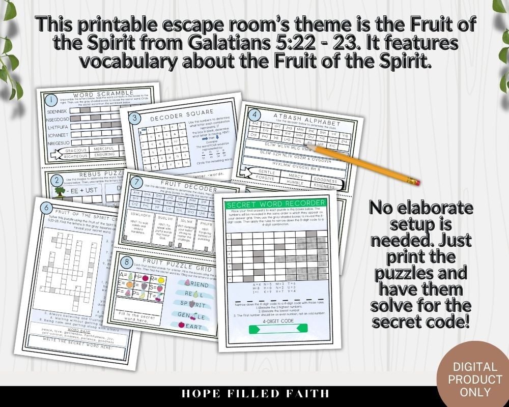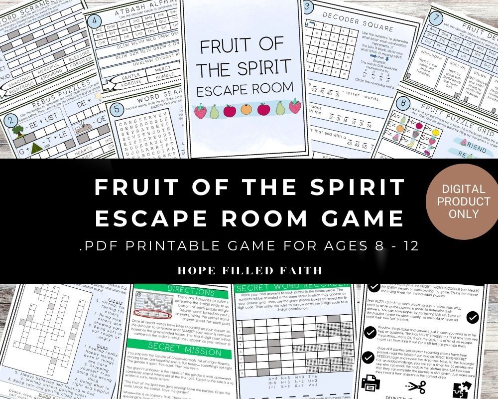 Bible Printable Escape Room for Kids Game, Fruit of the Spirit Theme - Bible Games Printable, Bible puzzles, Bible study games