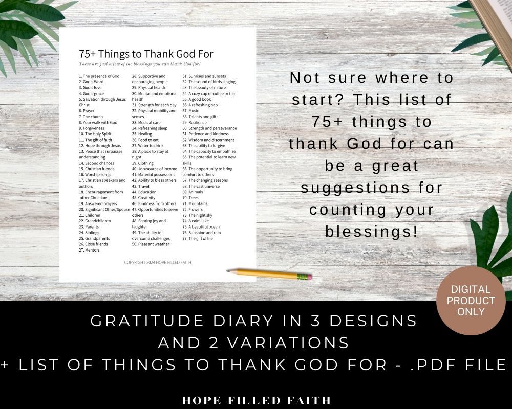 Printable Gratitude Diary & 75+ Things to Thank God For .PDF file