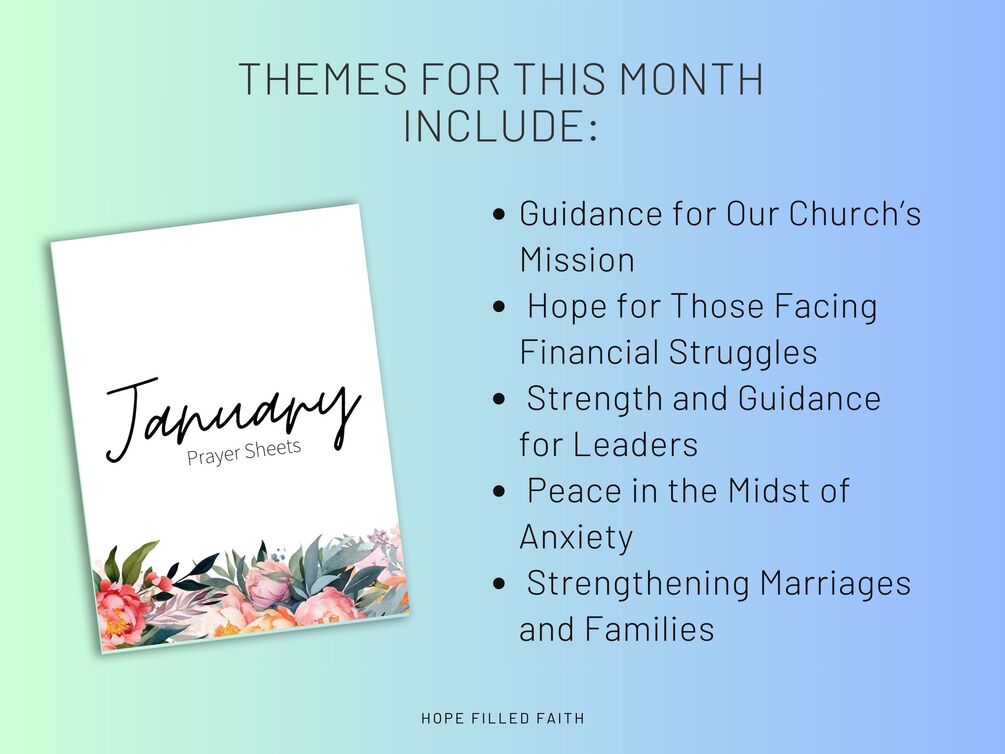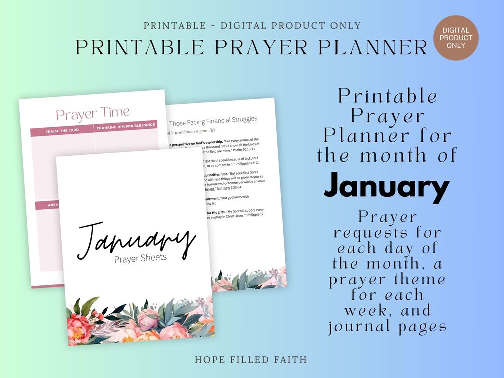 January - Free Printable Prayer Journal with Weekly Prayer Points, Christian Digital Prayer Planner PDF with 5 Prayer Themes