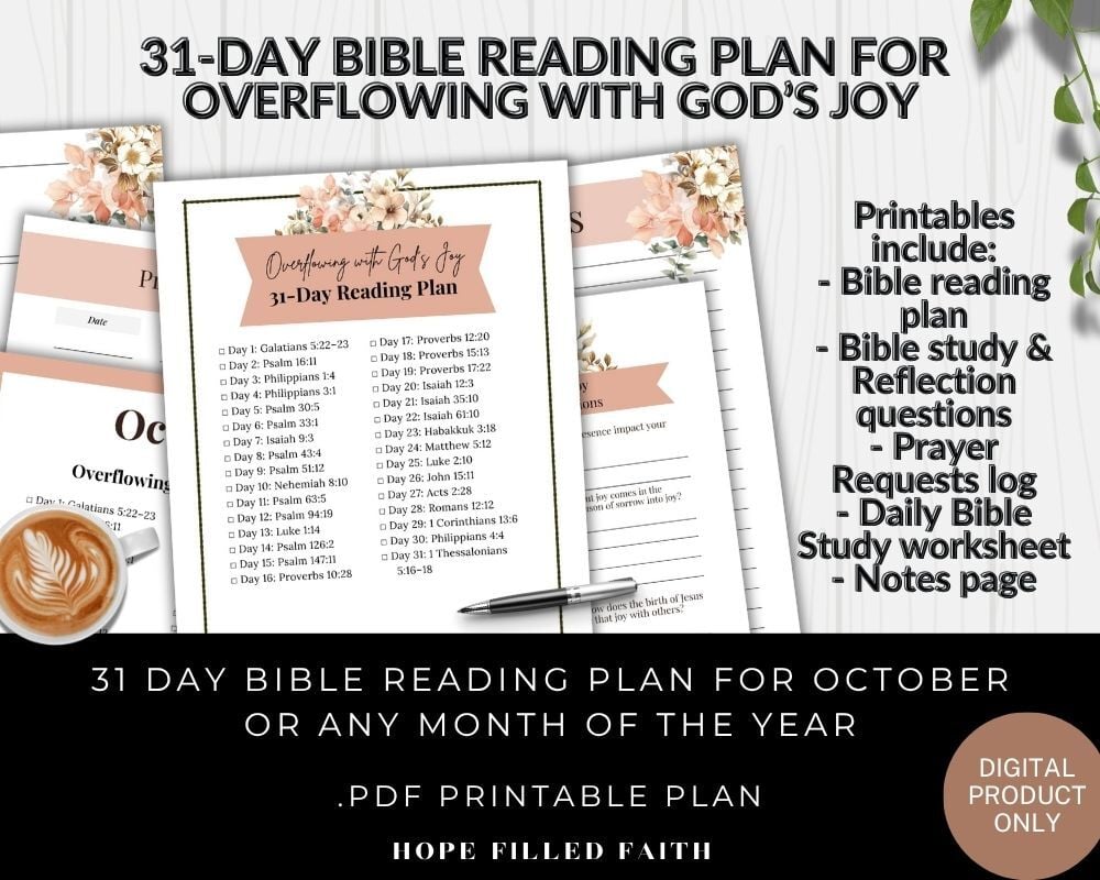 Overflowing with God's Joy - Printable Bible Study Guide with Bible Reading Plan, Bible Study & Reflection Questions, & Bible Journal Pages