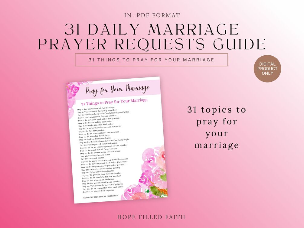 31 Daily Marriage Prayer Requests Guide - Free Printable .PDF