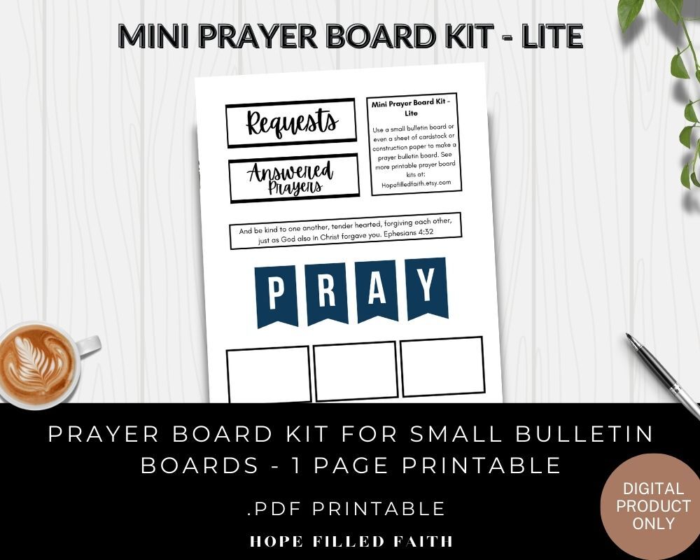 - A 1-page downloadable .PDF file of a prayer board kit printable - No physical product will be shipped to you. This is a digital product only.