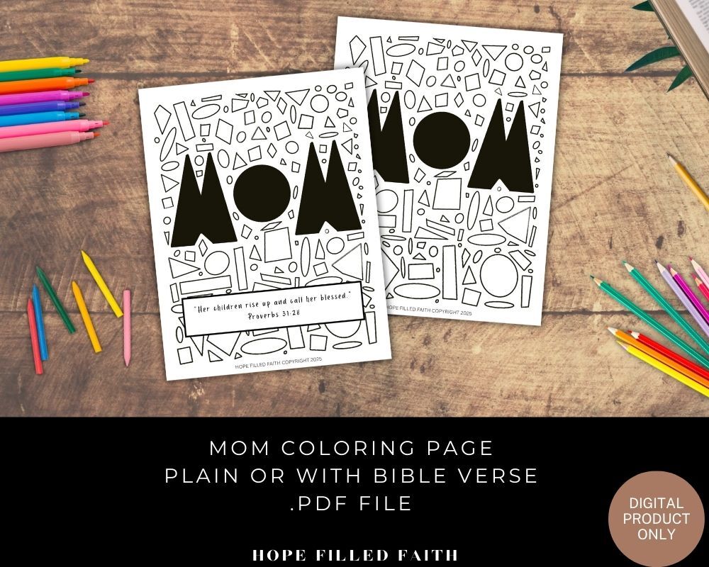 FREE Printable Mom Geometric Coloring Pages, with or without Scripture .PDF
