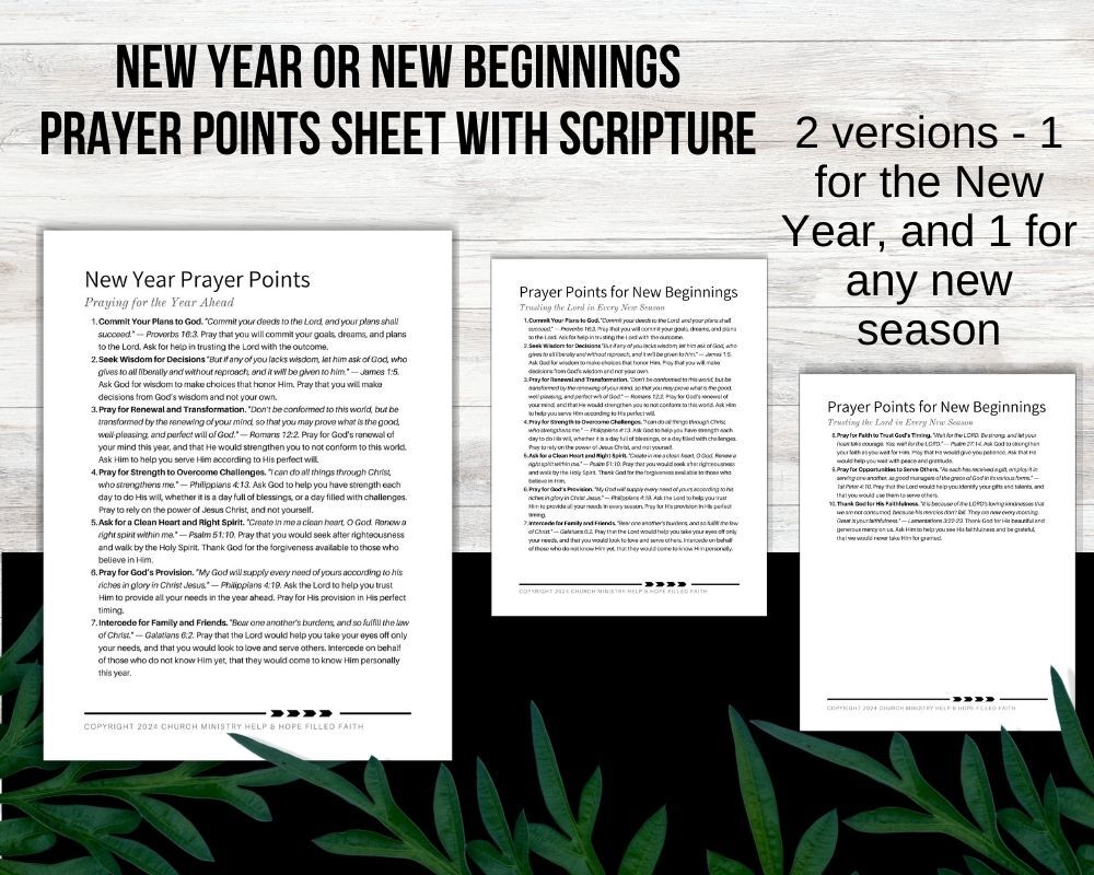 Prayer Points for New Year / New Beginnings – Free Printable PDF