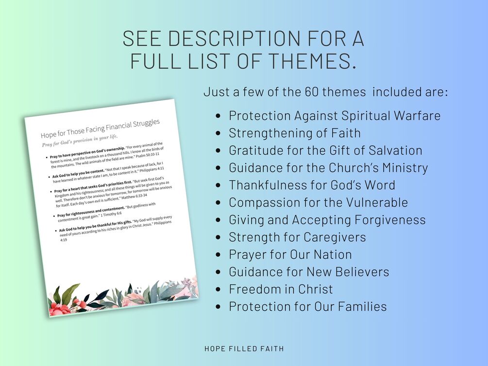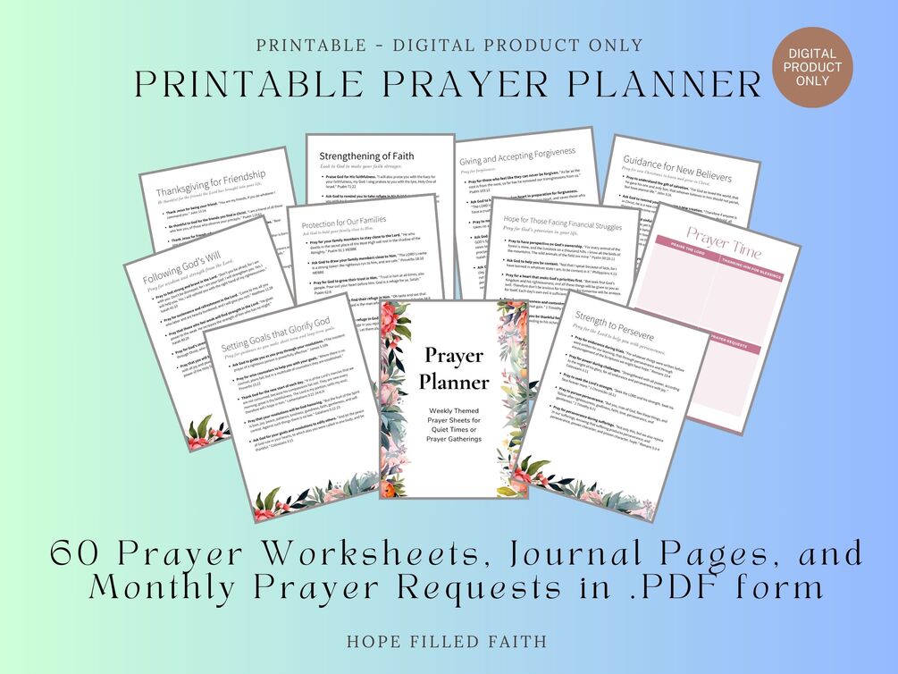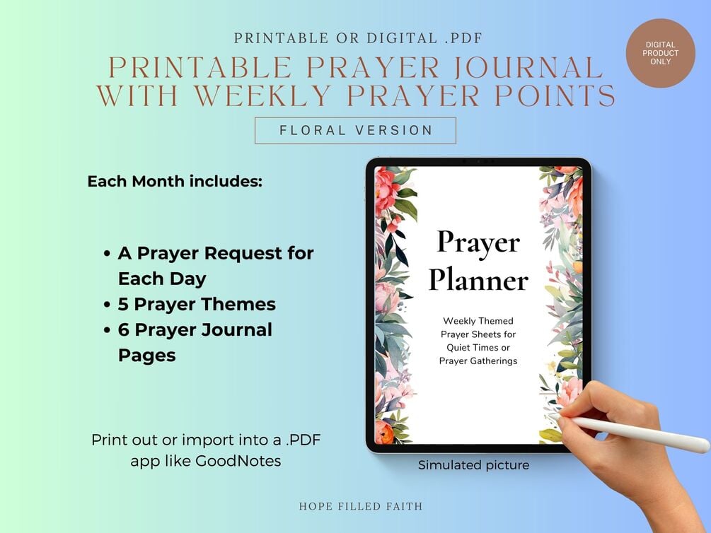 Printable Prayer Journal with Weekly Prayer Points, Christian Digital Prayer Planner PDF with 60 Prayer Themes