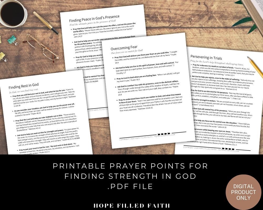 FREE Prayer Points for Finding Strength in God: Printable Prayer Sheets .PDF