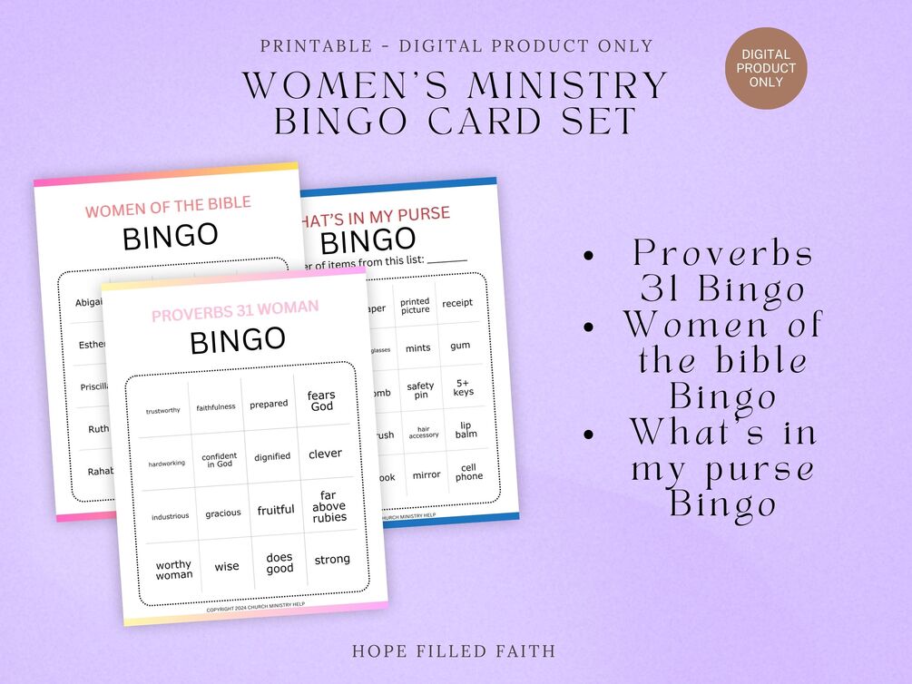 Welcome to our Women's Ministry set of Bible Bingo Cards! The themes include: